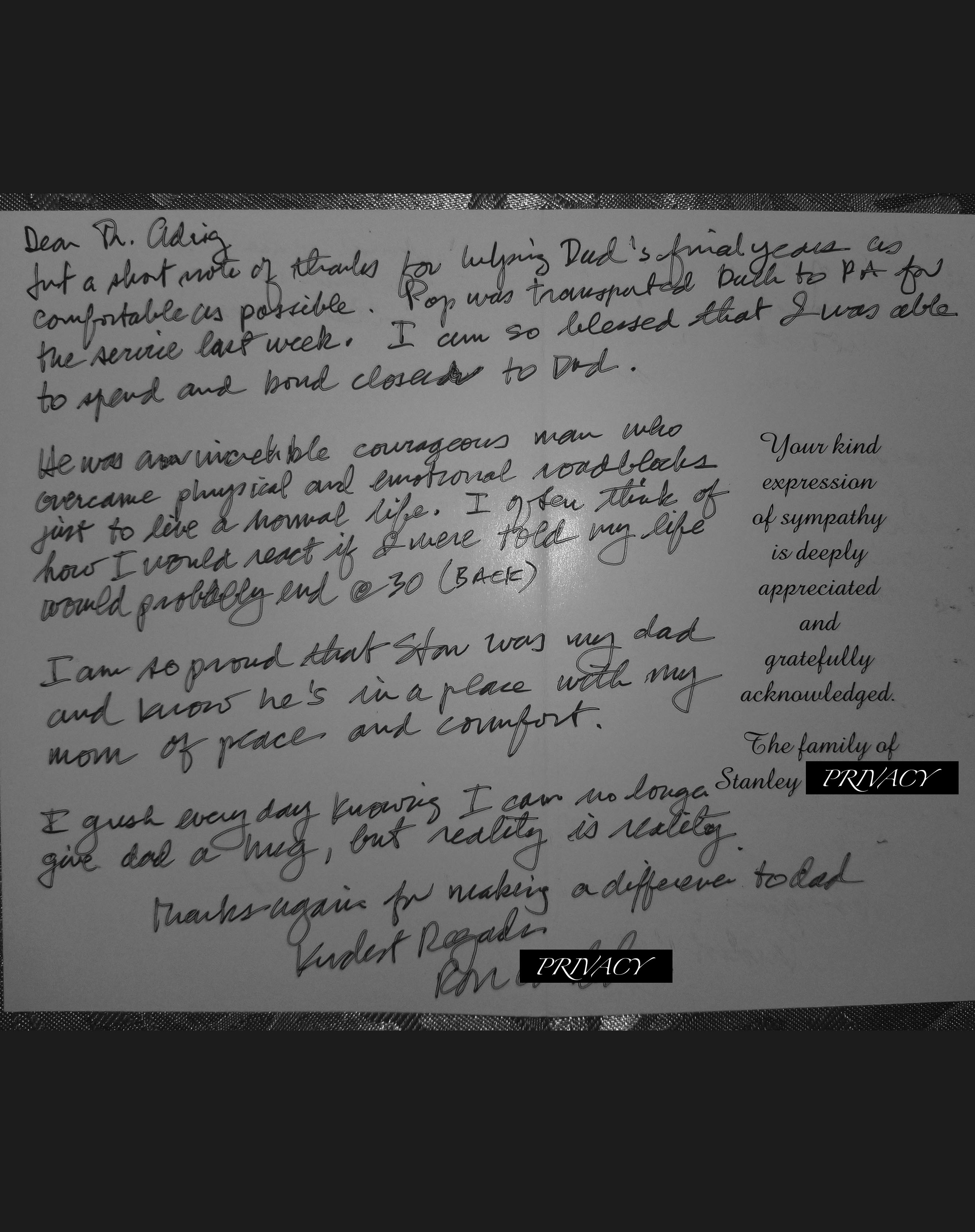 "I was impressed with your approach, care, and promptness in serving my mother, Hilda." - Norm M.
