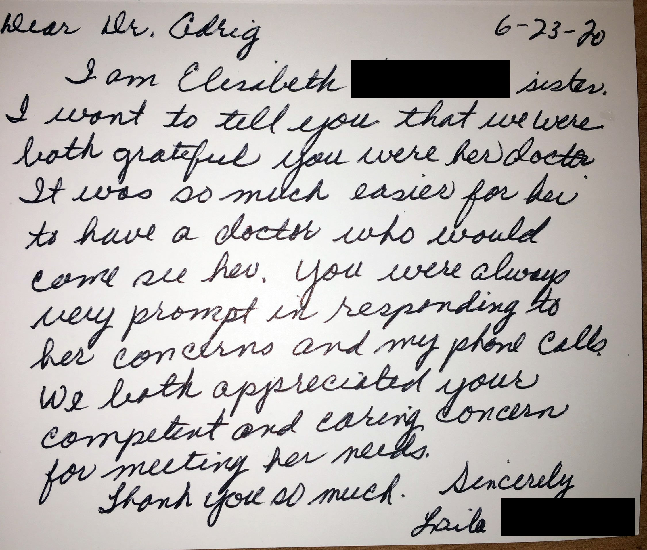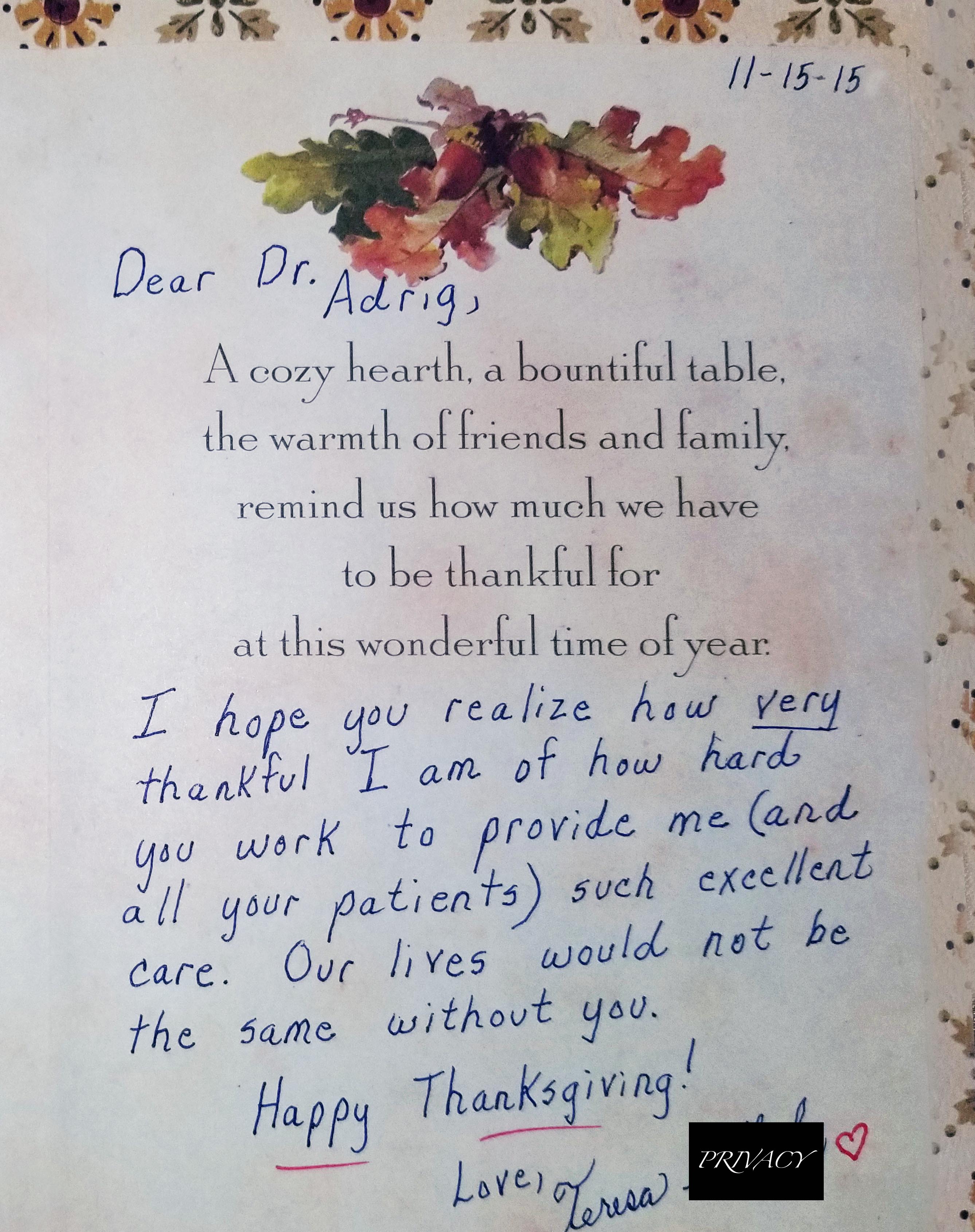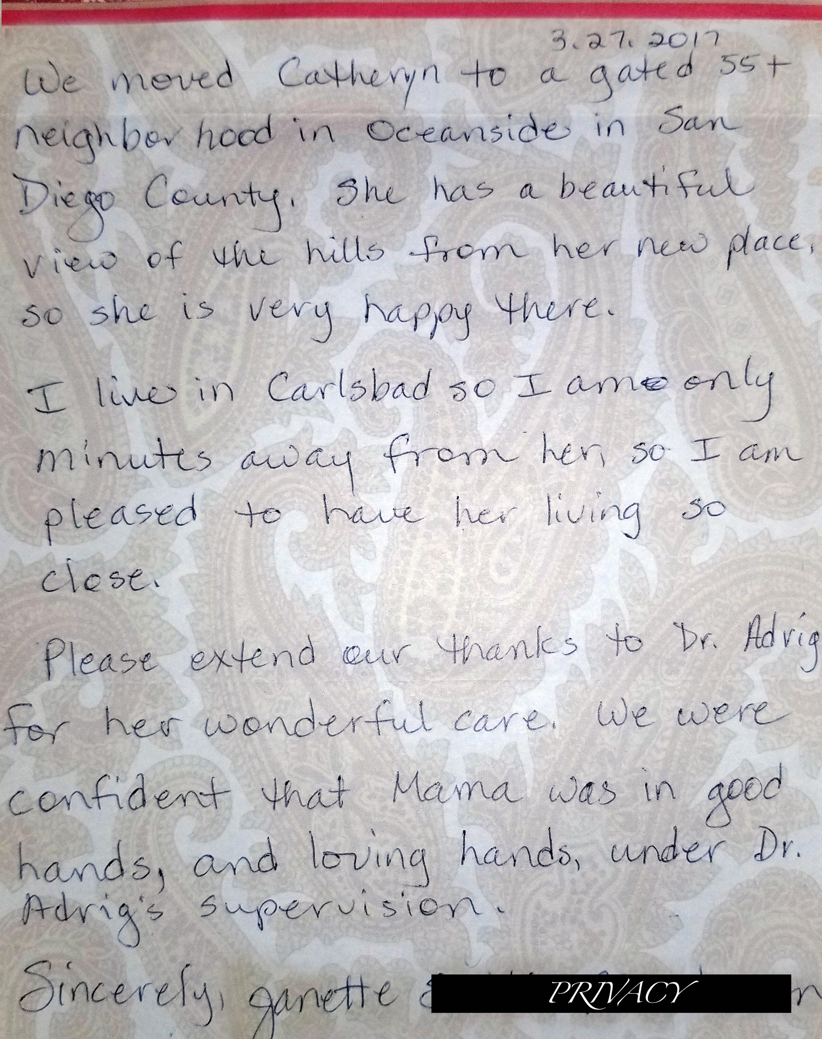 (Please note that signatures and/or other identifying information were masked or removed to preserve the privacy of our patients)