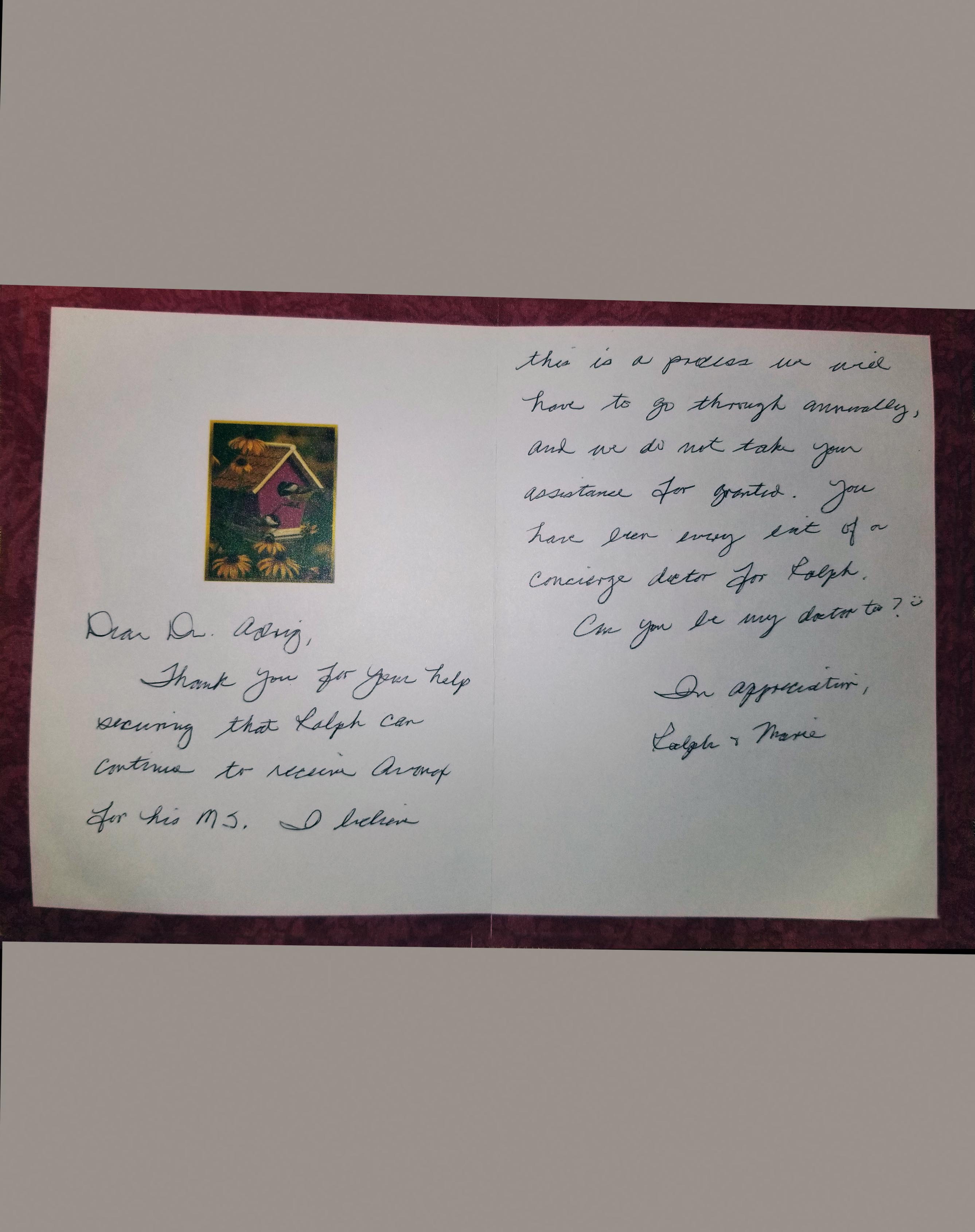 Letter from PatientClick to enlarge. -